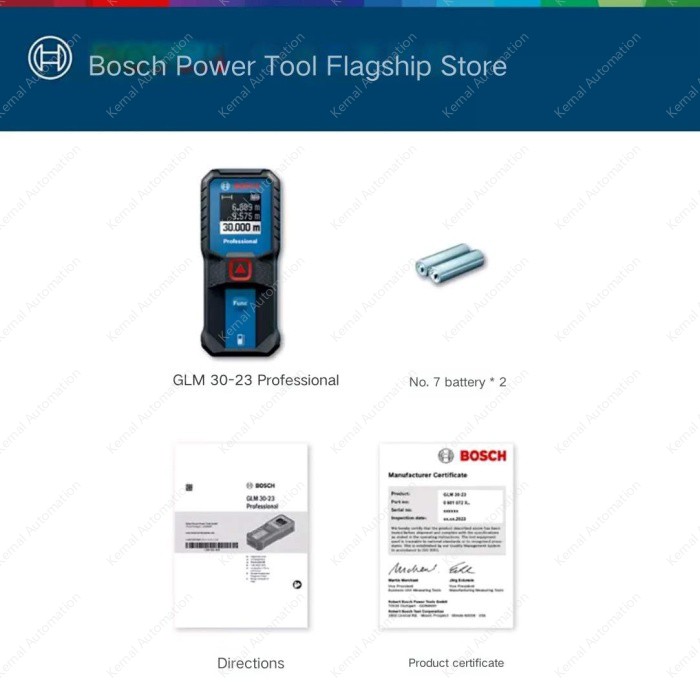 Compact and portable, easy to operate The GLM 30-23 Professional Laser Rangefinder is compact and portable Fits easily in your pocket At the same time, it is easy to operate Only 2 buttons are needed to switch between various functions Precise and reliable Bosch laser technology is ISO 16331-1 certified Subtleties Keep improving GLM 30-23 It can better meet the needs of various aspects Compare to GLM 30 More Bosch More resistant to drops and durable Equipped with a rubber protective case Provide effective protection for your equipment There is a large print pattern Easy to read data Continuous measurement mode The measurement results are displayed in large numbers Dot matrix graphic display Provides greater readability Brightness and contrast are carefully designed Can be read in a bright environment Baseline markers are added Measurements start at the trailing edge The measurement reference is located at the rear of the machine This is how the measurement results are calculated