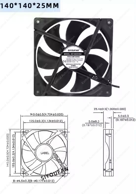 Voltage:AC110V~240VFrequency:50/60HZPower:7WSpeed:2600+10%RPMWind pressure:8.0mmHz0Air Flow:98CFMNoise:37dB(A)Bearing type: double ball